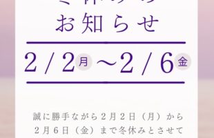 誠に勝手ながら2月2日(月)から2月6日(金)まで冬休みとさせていただきます。…